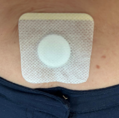 Basta aplicar o adesivo sobre a pele limpa e seca, na região inferior do abdômen. As instruções acompanham o produto.